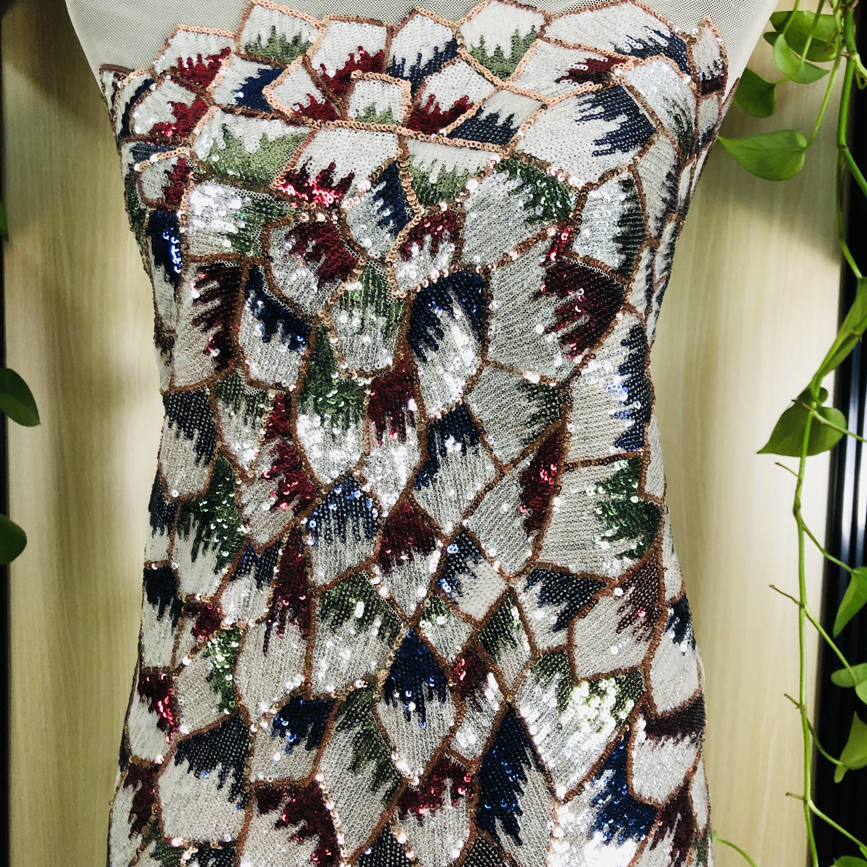 Nuevo hermoso bordado popular de bordado al por mayor de bordado de lente de lente de lente de malla exquisita bordado tridimensional combinado con lentejuelas brillantes, es ligero y transpirable, adecuado para vestidos de novia hechos a medida, vestidos nocturnos, trajes de rendimiento escénico y moda de alta gama. Ofrece una variedad de opciones de color para satisfacer las necesidades del diseño de moda.