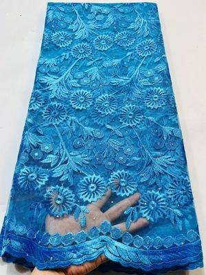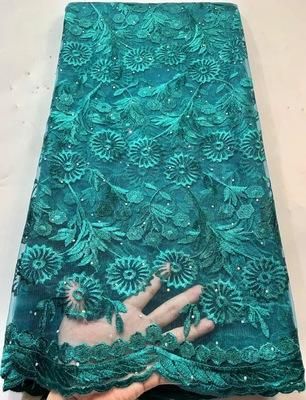 Tela de encaje de poliéster africano cortado con láser con lentejuelas Nigeria Laces adecuados para ropa y decoración de moda