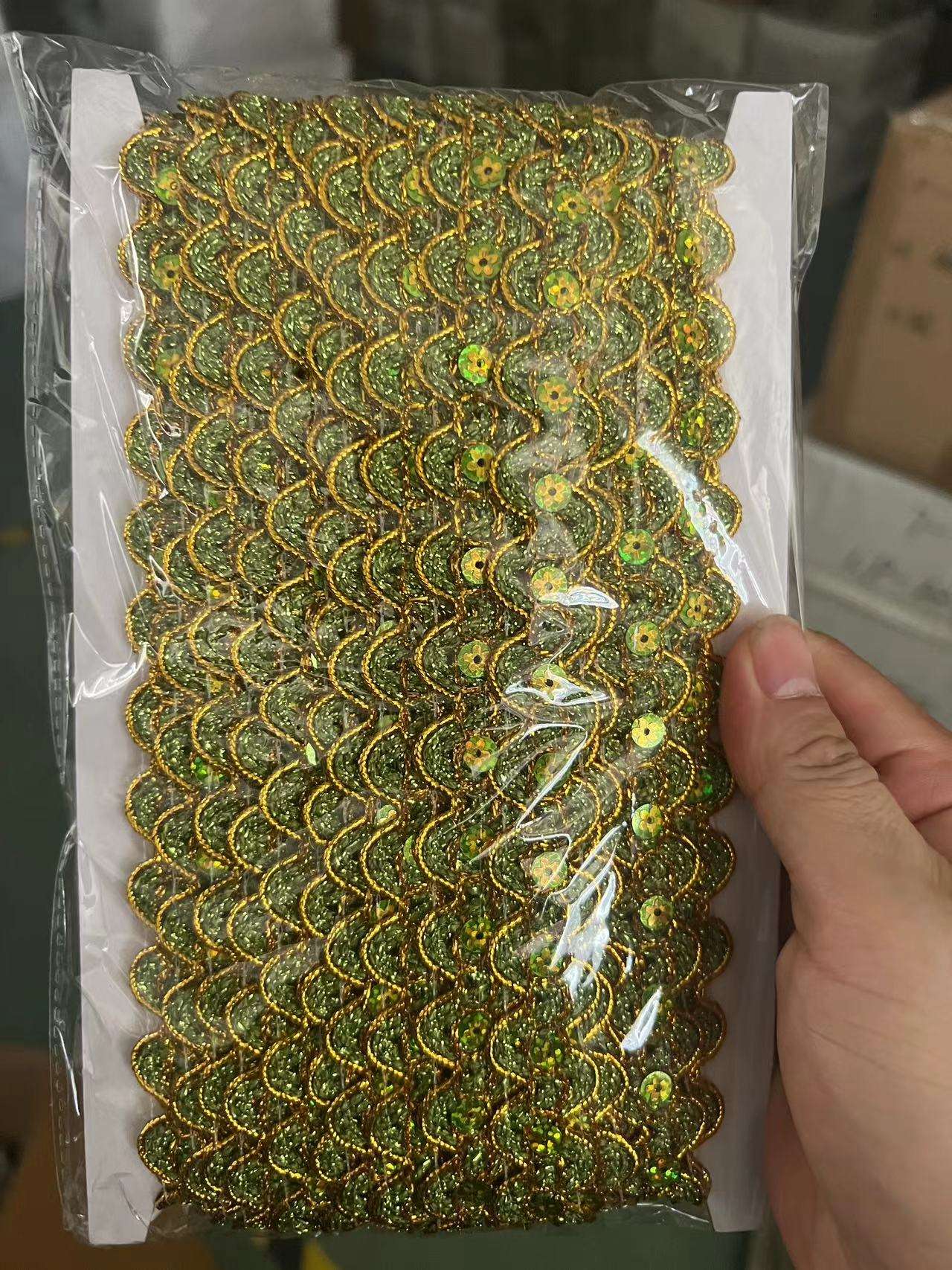 Accesorios de ropa Gold y plata bordes metálicos de encaje metálico lentejuelas metálicas de oro bordado adorno de encaje de encaje adopta la técnica de bordado de lentejuelas de metal y se combina con el diseño de encaje hueco, lo que lo hace adecuado para la decoración de accesorios de ropa.