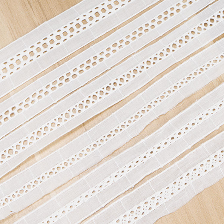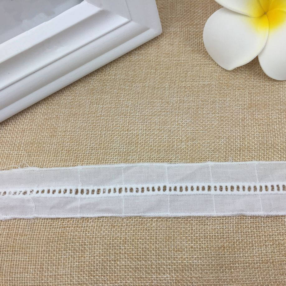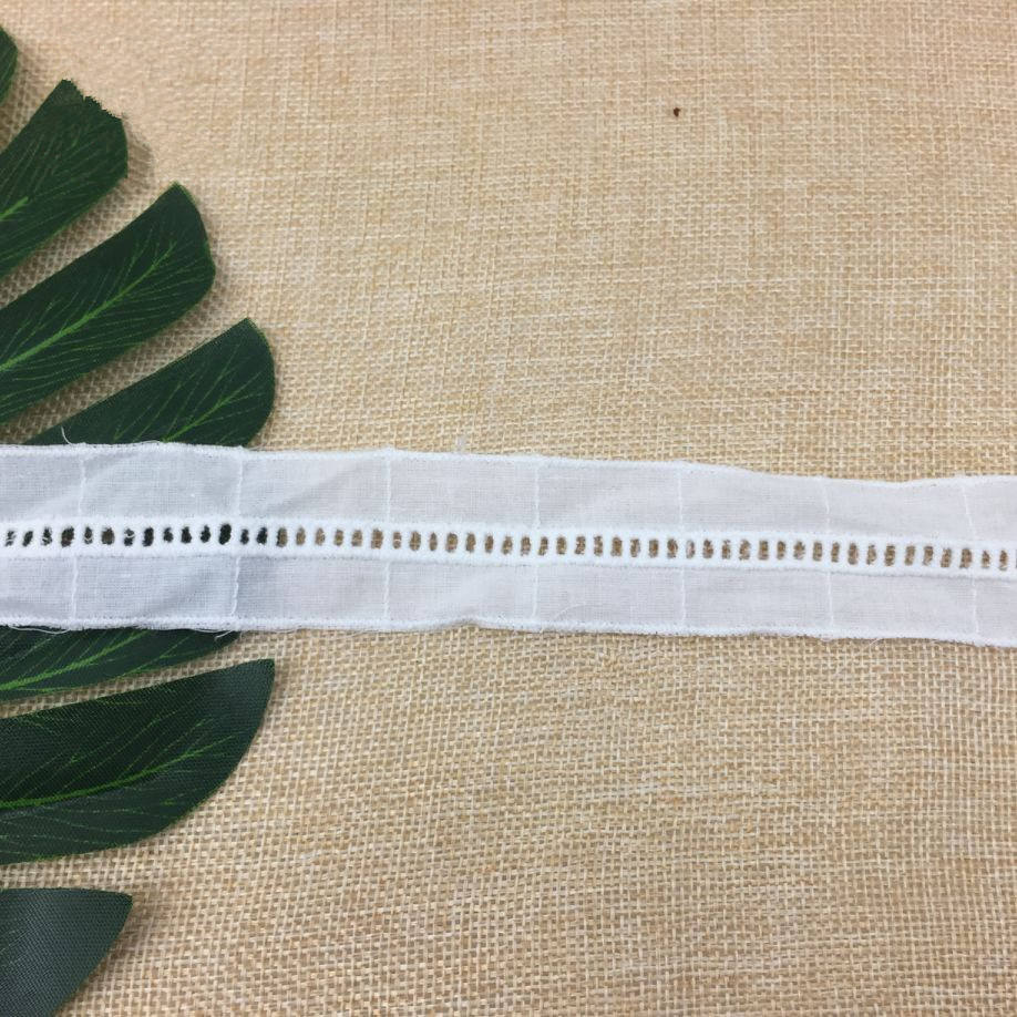 Ribete de encaje con ojales de algodón