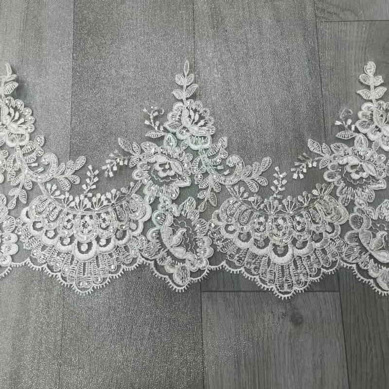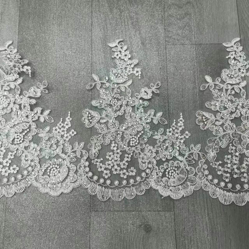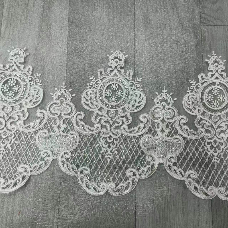 Luxury White White Bridal francés francés bordado adorno de encaje nupcial para vestido de novia